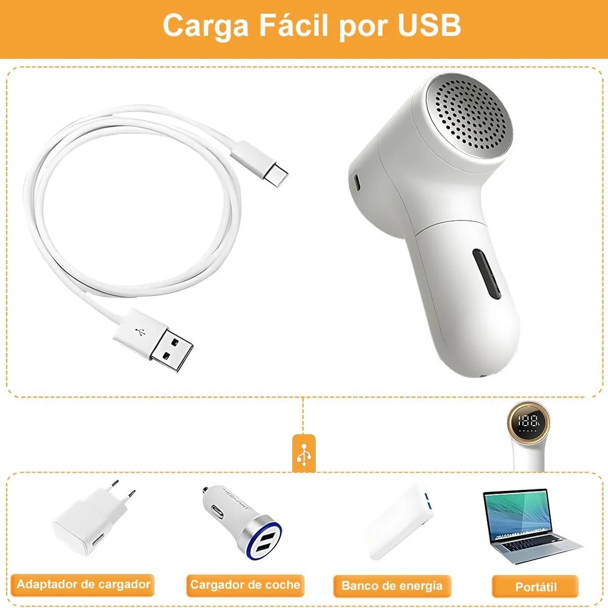 Quita Pelusa Recargable Portátil Para Ropa y Tela
